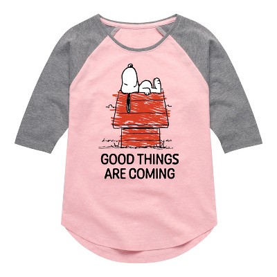 Girls' Disney There Are Bright Things Ahead Shirt Tail Raglan Graphic T-shirt - Light Pink/Ath Hea - Medium