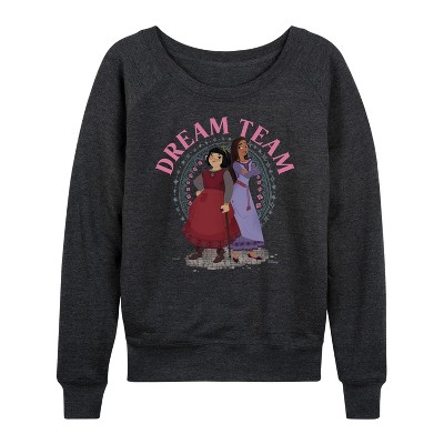 Women's Disney This Is The Thanks I Get King Lightweight French Terry Wide Neck Long Sleeve Graphic Shirt - Heather Charcoal - X-Large