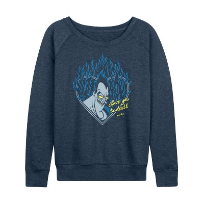 Women's Disney This Is The Thanks I Get King Lightweight French Terry Wide Neck Long Sleeve Graphic Shirt - Heather Indigo - X-Large