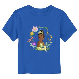 Your baby's dream wouldn't be complete without this officially licensed Disney The Princess and the Frog Tiana Wreath Portrait Toddlers' Graphic T-Shirt! This adorable design features a large graphic of the sweet Tiana giving her best pose while framed by purple and yellow lilies and plants across the front. Dress your little one in this adorable outfit and get ready for a day filled with The Princess and the Frog magic!