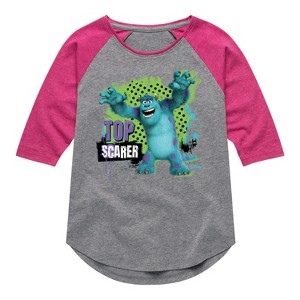 Monsters Inc. - Top Scarer - Toddler & Youth Girls Raglan Graphic T-Shirt - Add a touch of magic to your wardrobe with this graphic apparel featuring iconic Disney designs. Showcasing beloved characters and classic imagery, each piece combines nostalgic charm with modern style—perfect for Disney fans of all ages. Whether you're headed to the parks or just adding whimsy to your everyday look, these graphics bring the magic to life.