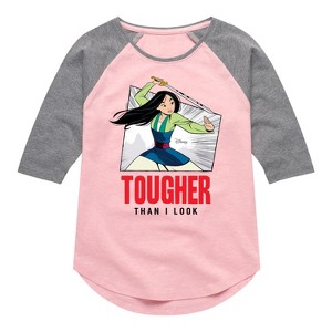 Disney Mulan - Tougher Than I Look - Toddler & Youth Girls Raglan Graphic T-Shirt - Add a touch of magic to your wardrobe with this graphic apparel featuring iconic Disney designs. Showcasing beloved characters and classic imagery, each piece combines nostalgic charm with modern style—perfect for Disney fans of all ages. Whether you're headed to the parks or just adding whimsy to your everyday look, these graphics bring the magic to life.