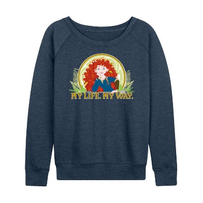Women's Disney Toy Story 4 Lightweight French Terry Wide Neck Long Sleeve Graphic Shirt - Heather Indigo - Medium