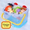 [This review was collected as part of a promotion.] This is sooo adorable. The characters are very like the cartoon and not weird looking. The caddy suctions well in my bathtub to keep it tidy. I took off a star because bath toys unable to fully open can mold.