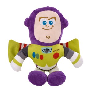 The loveable Toy Story Buzz Lightyear plush character with light up features is sure to become your little one's new best friend! Toy Story favorite Buzz Lightyear is made from soft plush in white with accents of red, purple and green. Printed face. Character stands 10" high, approximately 12" wide. Light up feature in the two wings, and on Buzz's chest. Requires 2 AA batteries (not included). Perfect for playtime day or night!