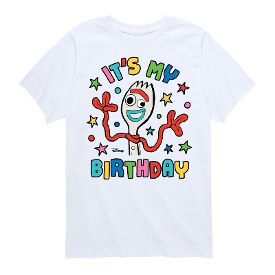 Disney - Toy Story - Forky Its My Birthday - Toddler & Youth Short Sleeve Graphic T-Shirt - Add a touch of magic to your wardrobe with this graphic apparel featuring iconic Disney designs. Showcasing beloved characters and classic imagery, each piece combines nostalgic charm with modern style—perfect for Disney fans of all ages. Whether you're headed to the parks or just adding whimsy to your everyday look, these graphics bring the magic to life.