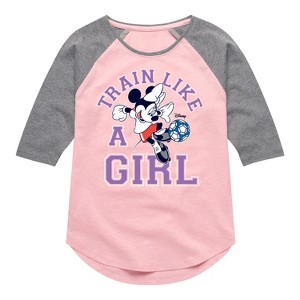 Disney - Train Like A Girl - Toddler & Youth Girls Raglan Graphic T-Shirt - Add a touch of magic to your wardrobe with this graphic apparel featuring iconic Disney designs. Showcasing beloved characters and classic imagery, each piece combines nostalgic charm with modern style—perfect for Disney fans of all ages. Whether you're headed to the parks or just adding whimsy to your everyday look, these graphics bring the magic to life.