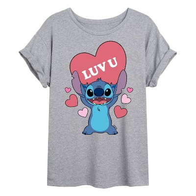 Lilo & Stitch - Valentine's Day Stitch Luv U Heart - Women's Oversized T-Shirt - Celebrate the ohana with Lilo & Stitch graphic apparel, blending new visuals with classic heartwarming moments featuring Lilo, Stitch, and the bonds of family.