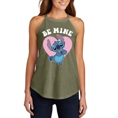 Women's Disney Valentine's Day Stitch True Love Pizza Graphic High Neck Tank - Heather Military Green - 2 X-Large