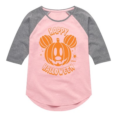 Girls' Disney Vampire Mickey Shirt Tail Raglan Graphic T-shirt - Light Pink/Ath Hea - X-Large