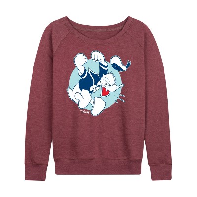 Women's Disney Vintage Donald Duck Art Lightweight French Terry Wide Neck Long Sleeve Graphic Shirt - Heather Maroon - Small