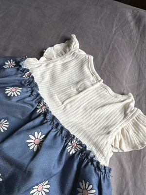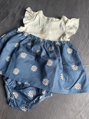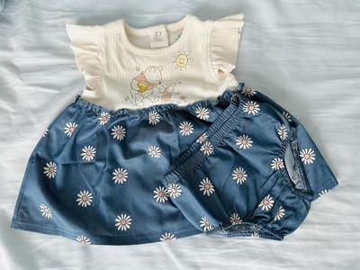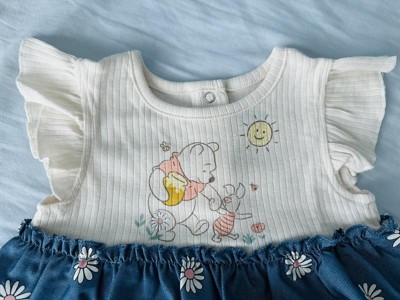 Disney Winnie the Pooh Piglet Floral Infant Baby Girls Chambray Dress and Diaper Cover Outfit Set Blue 18 Months