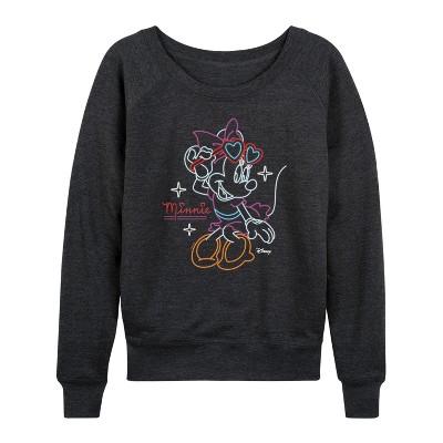 Women's - Disney - Xo Minnie Mouse Lightweight French Terry Wide Neck Long Sleeve Graphic Shirt