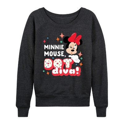 Women's - Disney - Xo Minnie Mouse Lightweight French Terry Wide Neck Long Sleeve Graphic Shirt