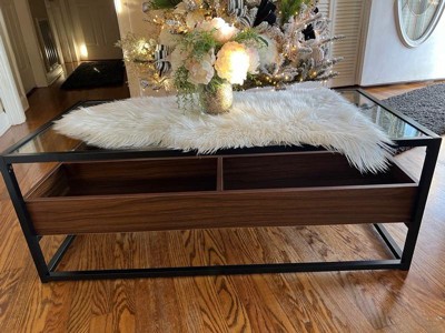 [This review was collected as part of a promotion.] I was actually very surprised with the coffee table. it’s a beautiful, dark wood color mixed with metal. Is like the fact it’s not very large table. Perfect for smaller spaces. It’s light weight so it’s easy to move around. I don’t have anything in the display area just yet but I’m going to put books in it. It is a gorgeous little table and a modern statement piece.