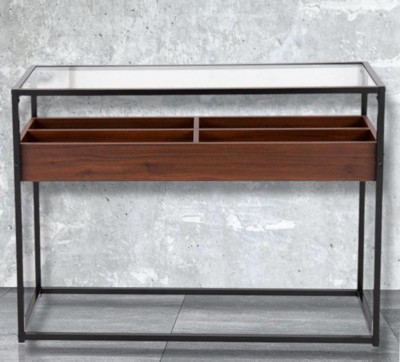 Display Tempered Glass/Steel/Wood Console Table Black/Walnut - LumiSource: Modern Entryway Furniture with Storage Compartment