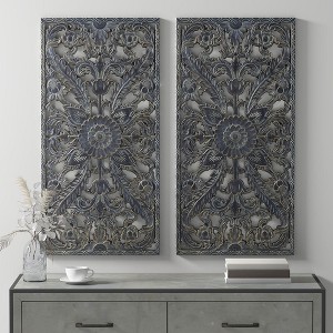Distressed Carved Wood 2-piece Wall Decor Set - 1 of 4