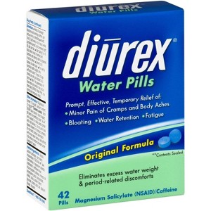 Read all package directions and warnings before use and use only as directed. Adults: Two (2) Pills every 4 to 6 hours while symptoms persist, not to exceed eight (8) pills per day. Start taking 5 or 6 days before onset of period and continue until desired relief is obtained or end of period. Drink 6 to 8 glasses of water daily. For use by normally healthy adults only. Persons Under 18 Years of Age Should Use Only as Directed by a doctor. Note: Diurex water pills will not discolor urine.Other information