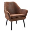 [This review was collected as part of a promotion.] I love this new versanora armchair. It's cozy, comfortable and looks great. The design looks like it's straight out of a magazine and the material itself is extremely soft. I have to admit at the beginning I was a little skeptical of the aged look, but once I actually saw it in person I was blown away by how nice it looked. It almost looks like a brown leather, so very high-end, but has elements of a distressed design that is all the fashion these days. It's large enough to fit a pretty good-sized adult and is pretty comfortable, however the cushion is a little bit hard but I'm hoping this will soften in the next few weeks. It was also extremely easy to put together and the instructions were crystal clear. The only thing I really had to do was screw in the legs onto the base of the chair. All the materials you need are included so you don't have to go out and buy anything. Like I mentioned before the only issue I had with this is that the cushion is a little bit hard. Overall I'm extremely pleased with how beautiful this chair looks in my home and would definitely recommend this to anyone who would like a stylish addition to any room.