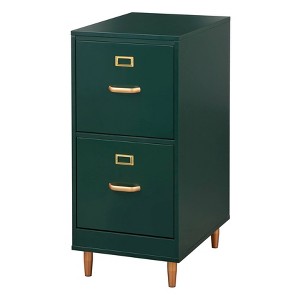 Dress up your home office space with the Dixie 2-Drawer File Cabinet from Buylateral. Two large drawers provide spacious room for documents, while the front drawer label holders assist in helping you stay organized. Finished in Green and accented with gold-tone metal handles and cone shaped legs, adds a touch of glam to any space.