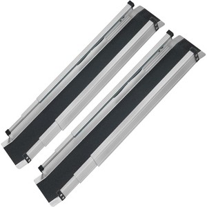 "Best Selling adjustable wheelchair ramps are perfect for home so wheelchair users can easily come and go in indoor or outdoor areas that need ramp assistance. Wheelchair users will also find them invaluable when visiting friends or family who may not have accessible entrances. Light and compact, these portable ramps are easy to travel with or store in the trunk of a car. Each ramp weighs only 6 pounds, making them easy to lift and position. They extend from 3 to 5 feet, for use on different step sizes and heights Each ramp can support 300 pounds (600 pounds total between them). How to Use Two ramps are included. To extend the ramps, pull sections one and two until the locking buttons are fully extended into the holes and snap into place. After use, simply retract them and put them away in their convenient nylon carrying bag. How to Measure for Wheelchair Ramps To calculate the length of the ramp you will need to measure the rise. The rise is the measurement between the ground and where the top of the ramp will be placed. The American with Disabilities Act (ADA) requires that public areas have wheelchair ramps with an incline of 4.8 degrees or less (a ratio of 1:12). This equals one foot of ramp for every inch of rise. For residential areas such as homes, ADA recommends a 2:12 slope. This equals one foot of ramp for every two inches of rise. To calculate the ramp length you will divide the rise by two. For home use, these ramps would work for rises up to 10 inches. Next, you need to measure the width of the wheels. These ramps have an inner track area of 4.5 inches. Be certain each wheel is no wider than 4 inches".
