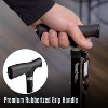 The DMI Adjustable Walking Cane combines lightweight portability with dependable stability. Its ergonomic, rubberized grip and wrist strap reduce fatigue while ensuring a secure hold, even on wet days. The pivoting quad base provides traction across grass, gravel, or slick floors, while the self-standing design adds convenience. Adjustable from 33"–37", it fits most users for personalized comfort. Folding to 11.5", this cane is ideal for travel, storage, and everyday use, offering safety and confidence with every step.