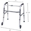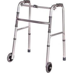 DMI Lightweight Aluminum Folding Walker with Single Release, 5 Inch Wheels, Adjustable Height, No Assembly Needed, Silver, 250 lb Weight Capacity