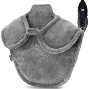 This extra-large heating pad wraps comfortably around the neck, shoulders, and upper back to help relieve stiffness and tight muscles. The contoured shape sits securely across the shoulders, while the soft micro-fleece material adds comfort for extended use. Weighted edges help the pad stay in place even when you shift positions. With three heat settings and a long 9-foot power cord, it can be used on a bed, couch, or chair with ease. The removable cover is machine washable for simple care, making this heating pad a soothing option for tension, sore muscles, and everyday comfort.