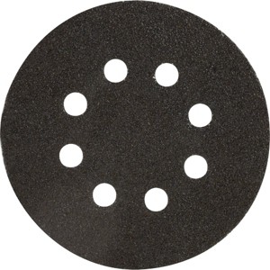 For use with quick changing hook and loop backing pads. Fits vented sandpaper with 8-hole dust collection pattern pad. Made with durable black zirconium oxide abrasive. Anticlog stearate lubricant resists sand dust build up. Resin coated to resist heat and humidity.