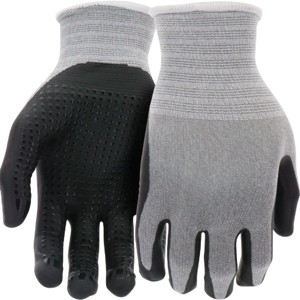 Nitrile dipped glove with dots for improved grip. Seamless nylon shell, high dexterity and easy grip.