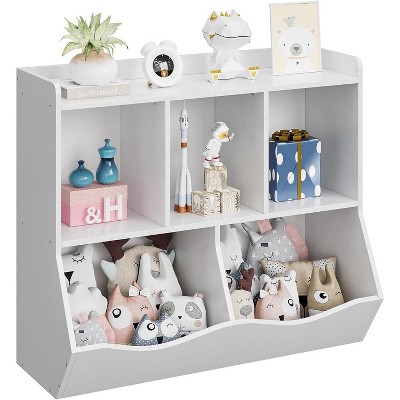DobleePy 2-Tier Wooden Kids Bookshelf with Cubby Storage, Durable Toy Organizer for Playroom, Nursery, Bedroom, White