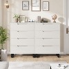 Upgrade your home storage with the DobleePy 4-Drawer Tall Dresser. Standing 41.7 inches high with a compact footprint, this freestanding cabinet features a clean white finish and smooth modern lines that blend seamlessly into any room. The spacious drawers offer convenient storage for clothing, accessories, or daily essentials, while the wide tabletop provides a perfect surface for lighting or decorative items. Built from engineered wood with a polished finish and waterproof top, this dresser is durable, stylish, and easy to maintain—perfect for bedrooms, closets, hallways, or living areas.