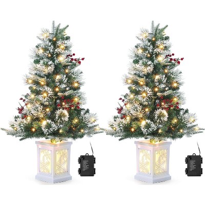 Dobleepy 3Ft Pre-Lit Christmas Tree with 78 LED Lights, Snow Flocked Artificial Tabletop Tree with Base