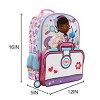 - Custom Design: Showcases Doc, Lambie, and Stuffy with clouds, rainbows, hearts, and a magnifying glass for a fun, playful look. Product Dimensions: Backpack: 16" H x 12" W x 5" D