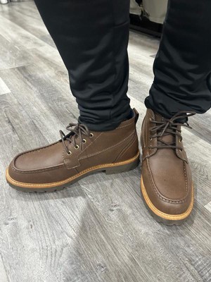 [This review was collected as part of a promotion.] I am really impressed with these Dockers Thames Moc Toe Boots right out of the box. They have a rugged, classic look that works just as well for a casual dinner as it does with a pair of jeans for the weekend. The synthetic leather feels durable and is treated with a stain guard, which makes them very easy to keep clean even with daily wear.