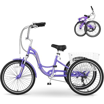 Docred Folding Tricycles, 7 Speed, 20 24 26 Inch 3 Wheel Folding Bikes with Low Step-Through, Foldable Tricycle for Outdoor travel