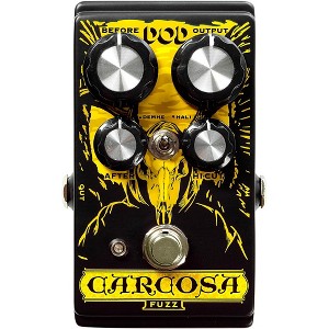 The DOD Carcosa Fuzz is a doorway into an alternate fuzz universe, where classic tones of legend coexist with splattered and shattered Pollock abstractions. Combining the Carcosa's wide-ranging after bias control with two toggle positions creates tones that range from porcine fatness to desiccated shards. This versatility makes the Carcosa Fuzz a good companion for dirty or clean amps. True bypass, tons of output, and the visage of the King in Yellow sets the stage for fuzzy madness.The DOD Carcosa Fuzz has an exaggerated mid-range and treble character that help it stand out in a mix. It has been designed to cut through a dense and heavy band but still have great note articulation with chords. However, when extreme bias (after) ranges are selected many wild and over-the-top sounds are possible.