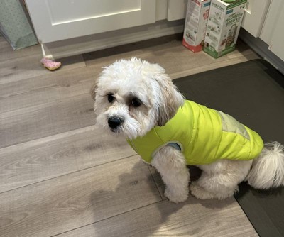 I got the puffer jacket Target had last year for one of my dogs. I loved it so much I decided to get this one for my other dog this year. This one is a bit different, the design/fit has changed. I like that it goes around the dogs legs so it won’t twist around their body, but I don’t like the Velcro going down the stomach from chest to tail rather than across from side to side (like last year’s version). It makes for a snugger fit and the velcro tends to pull more so it doesn’t seem as secure that way. My dog doesn’t seem to mind too much though so we’ll keep it for the cool weather!