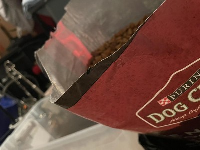 Thank you for bringing this to our attention. While we're happy to hear that your dogs love our Dog Chow Complete & Balanced Adult Dry Dog Food with Real Beef Flavor, we're very sorry to hear about your experience. We encourage you to contact Target's customer support team, as they are in the best position to assist you with specific delivery questions or concerns. You can reach them here: https://contactus.target.com/. We value your loyalty and invite you to contact us for any other concerns through this link: https://www.purina.com/contact-us. – The Dog Chow Team