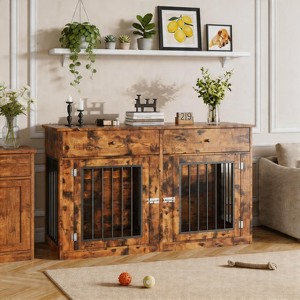 60" Dog Crate Furniture for 2 Dogs, Heavy Duty Dog Kennel Furniture TV Stand with 2 Drawers, Dog Crates for Small Medium Dogs