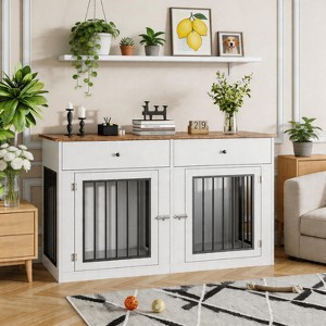 60" Dog Crate Furniture for 2 Dogs, Heavy Duty Dog Kennel Furniture TV Stand with 2 Drawers, Dog Crates for Small Medium Dogs