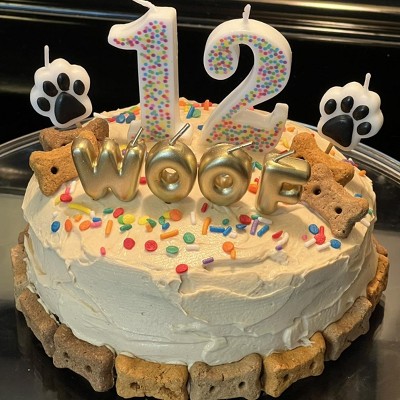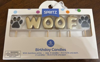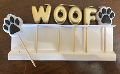 These woof candles are so cute. They are small candles that will be perfect for the cake for my dog's birthday. There also is two dog print candles too. They look like they are well made candles. I can't wait to take pictures of my dog with these candles on her cake for her next birthday.
