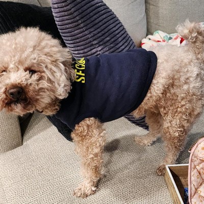 [This review was collected as part of a promotion.] This is such a funny shirt for any little dog. I wanted to do this just for Halloween, but I don't think I'll ever be able to take it off. On my toy security poodle the Small fit accurately, and the length was standard to other costumes I've used previously. The material is fairly thick, and I like how it tends to bunch up less than other shirts I've used.