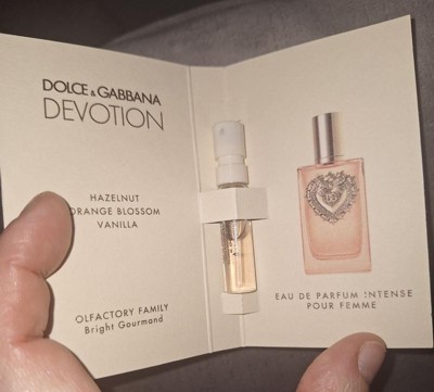 [This review was collected as part of a promotion.] Dolce and gabana devotion eu de parfum intense, this perfume smells nice has a sweet scent to it and being eu de parfum has a strong scent that lasts very well, a bit on the pricier side for a bottle of this but would be a nice gift