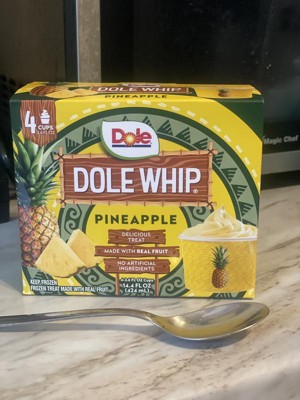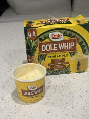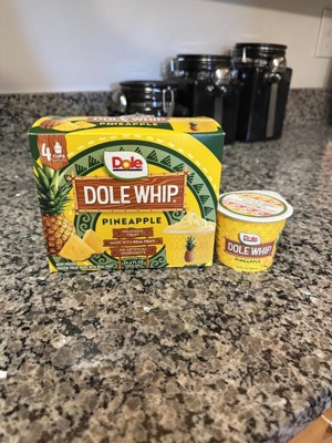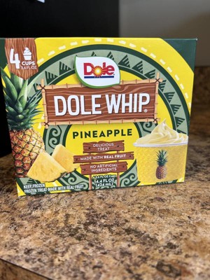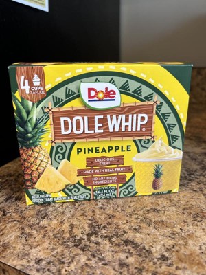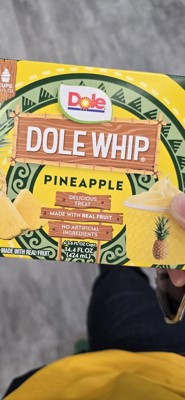 Refreshing, velvety smooth Dole Whip is a fruit first frozen treat that will make your dessert dream come true. Bursting with fruit flavor, the whipped wonder is made with fruit puree as the 1st ingredient, no corn syrup and has 140 calories per serving. Single-serving cups make snacking easy, fun and delicious.