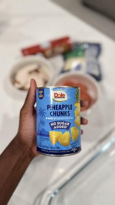 - DOLE Pineapple Chunks in 100% Pineapple Juice pre-cut chunks are great for snacking, toppings on yogurt/cottage cheese, or with your cocktails; No Sugar Added, Not a low calorie food; See Nutrition Facts for sugar and calorie content