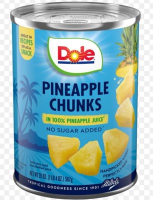 - Dole® Pineapple Chunks in 100% Pineapple Juice are filled with all the deliciousness you find in whole pineapple with no added sugar.