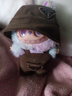 Dress your 17.5cm Labubu doll in cozy style with this soft brown corduroy overall set, inspired by top fashion trends. The set features finely detailed overalls crafted from plush corduroy fabric, offering a warm and stylish look. To complete the outfit, it includes a matching hat designed with special ear openings—perfectly tailored so your Labubu’s ears can pop through with ease. A fashionable yet playful ensemble, this outfit makes your Labubu stand out while staying snug and adorable. This listing is for one doll outfit, the doll is not included.