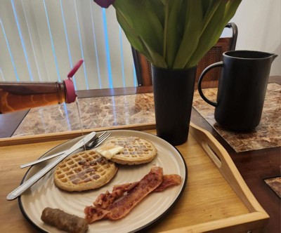 This syrup offers a delightful blend of flavor and charm, making it a perfect addition to breakfast favorites like pancakes and waffles. Guests appreciate its unique guitar-shaped bottle, which adds a fun touch to the table. The syrup is noted for its rich, buttery taste and ideal consistency, making it easy to pour without mess. With no high fructose corn syrup, it stands out as a healthier option while still being sweet and enjoyable.