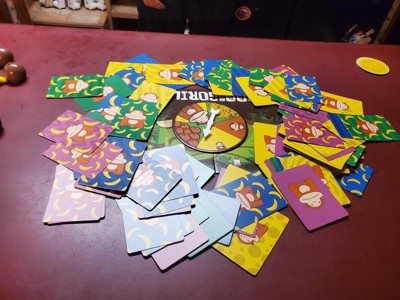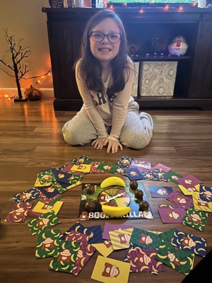 Introducing the 800 Pound Gorilla, the latest sensation from the creators of Taco Cat Goat Cheese Pizza! This brand new game for 3-6 players is a wild ride of fast-paced action, hilarious phrases, and bananas flying left and right. Spin the spinner, grab bananas and coconuts, but watch out for the gorilla! When the spinner lands on a gorilla, players must race to claim the right-size gorilla, but finding it isn't as easy as it seems! With its easy-to-learn rules and quick 10-15 minute gameplay, the 800 Pound Gorilla is perfect for family game nights, gatherings, and parties. Engage players of all ages with this dynamic and exciting game that guarantees endless laughter and entertainment. Get ready to go bananas with the 800 Pound Gorilla! Prepare for laughter and excitement while guessing and grabbing!